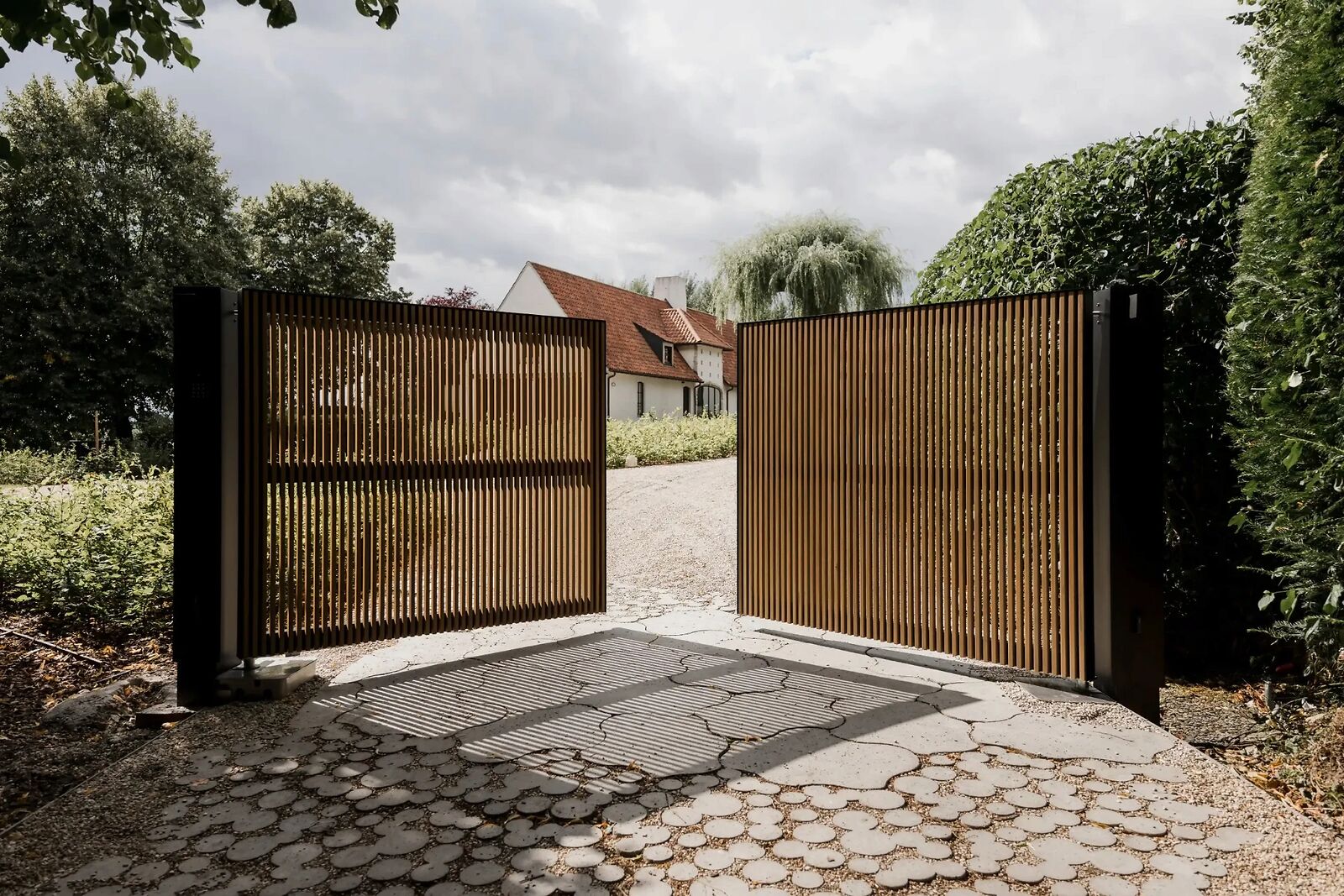 Een draaipoort of twee-vleugelige poort moet niet alleen mooi zijn, maar ook perfect functioneren. Daarom werken we met hoogwaardige scharnieren en automatisatiesystemen die zorgen voor een soepele en gecontroleerde opening.